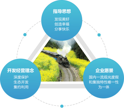 公司秉承“发现美好,创造幸福,分享快乐”指导思想,以“深度保护,生态开发,集约利用”为开发经营理念,逐步打造成“国内一流观光度假和集独特性唯一性为一体”的旅游知名品牌。